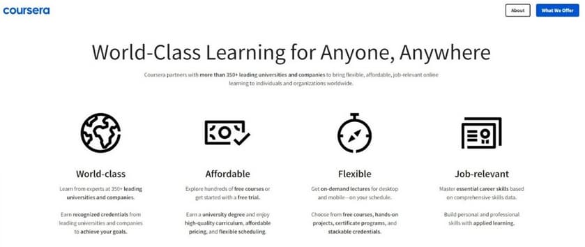 Coursera puts the university on your laptop. It works with hundreds of top schools and companies like Stanford and Google. This is for people who want a formal education online. You can take single classes or commit to full degrees.